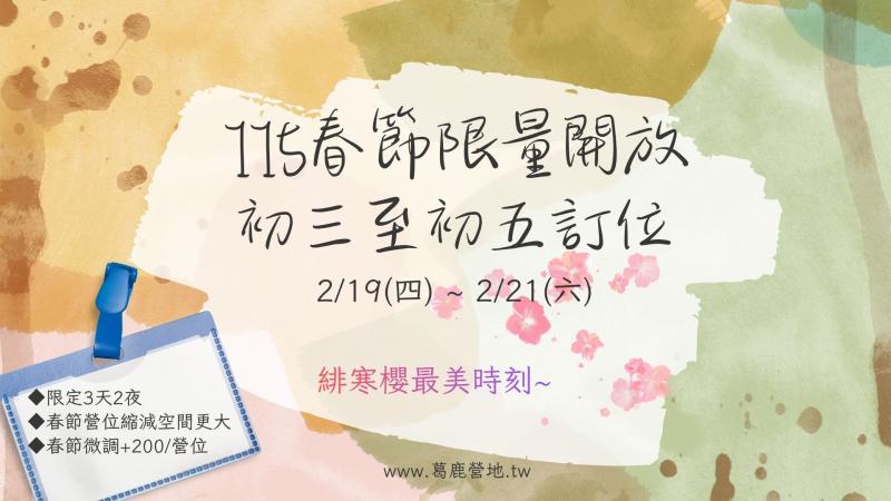 已經連續三年到跟親友一起到葛鹿過年,喜歡營位的寬敞,乾淨,如果可以希望每年都可以 回葛鹿過年,很